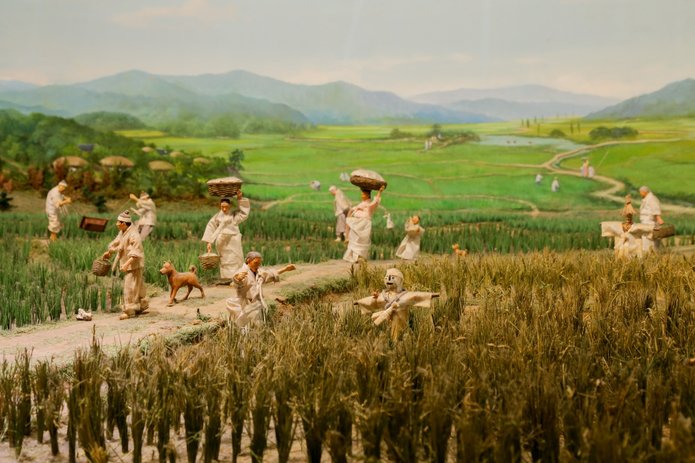 Maquette d'agriculteurs coréens aux champs. Musée de l'agriculture de Séoul.